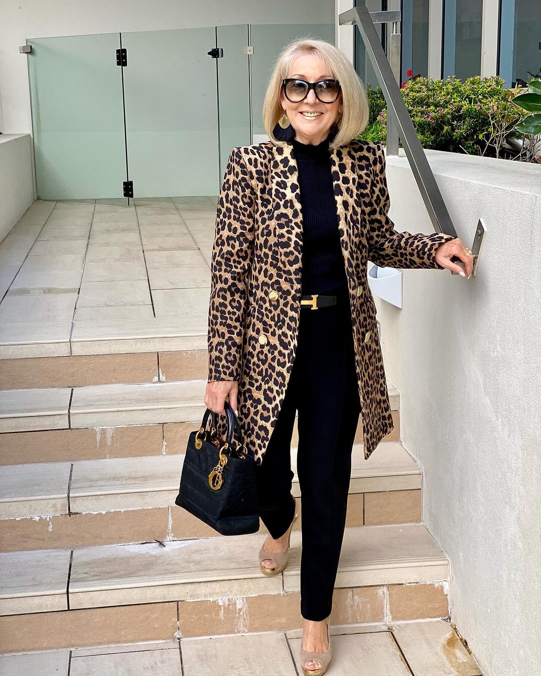 Leopard Coat Jacket Large Buttons Cardigan Warm Work Suit Fashion