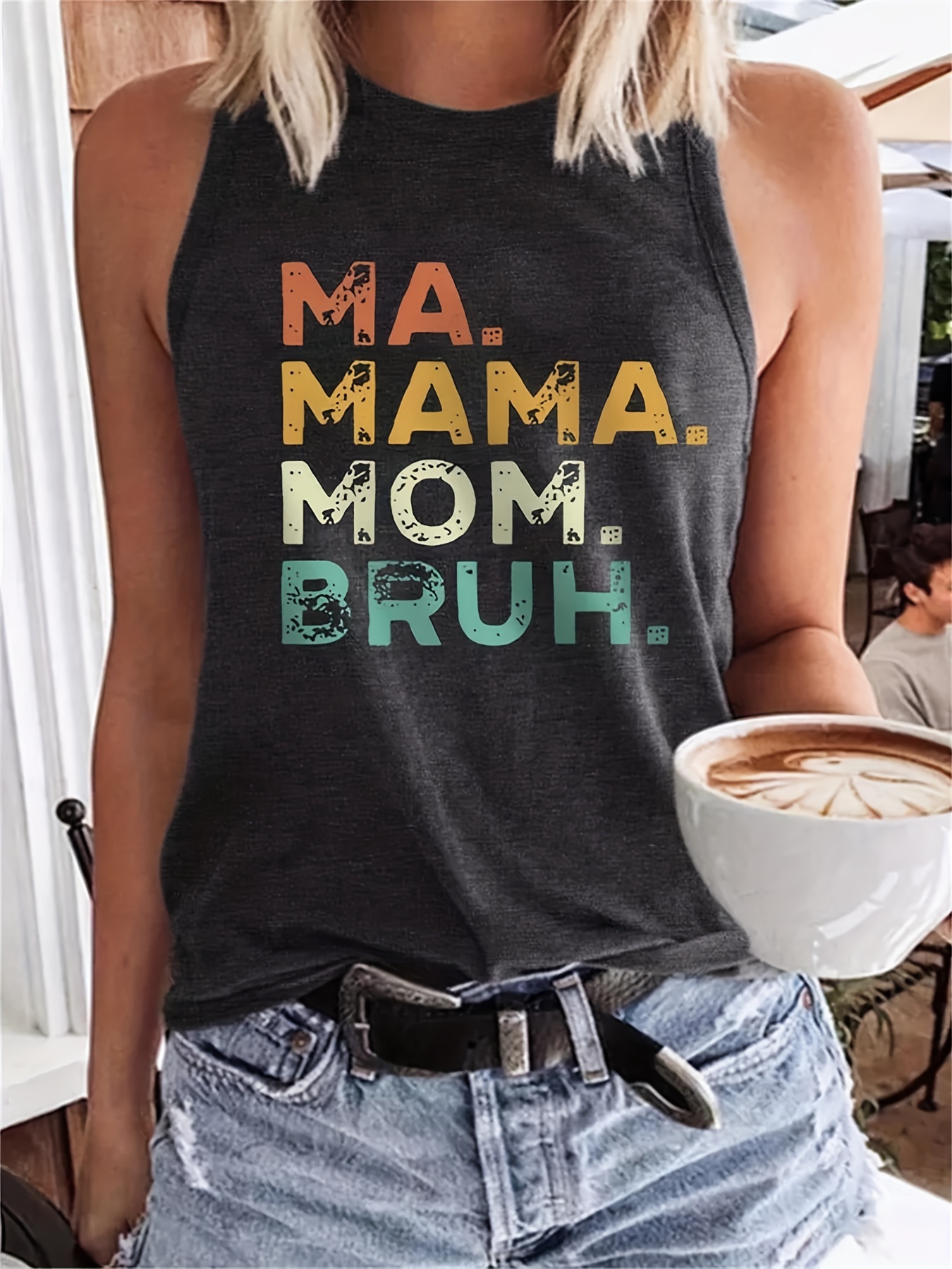 Letter Print Crew Neck Tank Top, Casual Sleeveless Tank Top For Summer, Women's Clothing